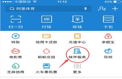 1.打开支付宝APP,进入城市服务。
