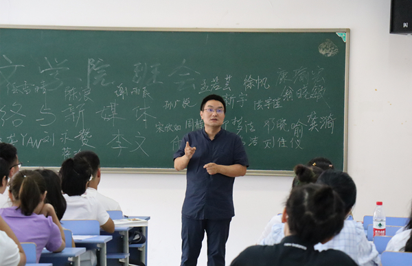 24日上午,在各班班助的主持下,2019级新生开展了大学的第一次班会。班会上,学办辅导员从专业学习、生活、情感等多方面与新生进行了交流,不仅向新生们介绍了人文学院相关专业和简单高效的学习方法,还特意叮嘱新生在校园内外遇到无法自行处理的事情时,要如何及时向老师、学校寻求帮助。班会上,2019级新生也都做了自我介绍,我来自哪里,我的爱好是什么,对于大学四年有什么样的期待……这些都将化做一个美丽的音符,汇入他们大学四年的记忆里,汇聚成一首青春之歌、奋斗之歌。
