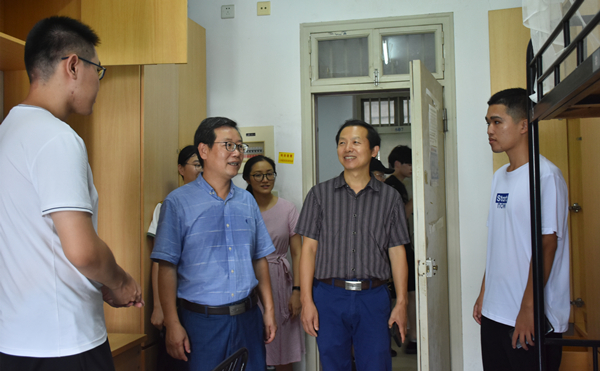 (图为王华书记带队走访新生宿舍)