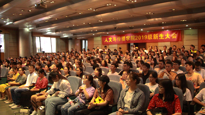 9日下午五点半,人文学院2019级全体研究生、本科生、专升本学生共237名同学在图书馆一楼报告厅迎来了学院为他们准备的新生大会。院党委书记王华,副院长范家进、潘文年、程丽蓉,中文系主任郭剑敏、广告系主任徐少丹、网络与新媒体系主任沈珉、新闻系主任李蓉、历史系主任杨齐福以及全体学办辅导员参加了新生大会。大会由学办主任商月怀主持。从这天开始,新生们告别了15天的军训,开始进入到了大学的课堂学习。