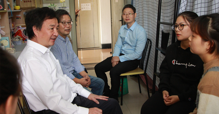 在我校正在开展“不忘初心,牢记使命”主题教育活动之际,10月16日中午,陈寿灿校长来到偷拍视频 33幢425寝室,走访他联系的朱燕燕同学和他所联系的学生寝室。偷拍视频 党委书记王华、校办、学办有关人员陪同走访。