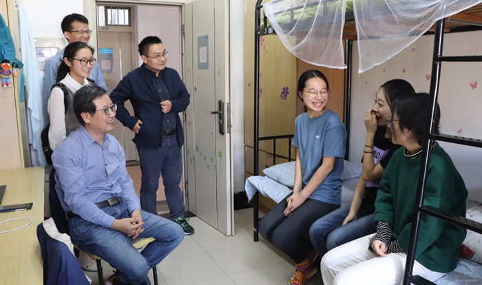 在620大一新生宿舍,王书记和大家围坐一起,具体了解她们大学的适应情况。当有同学提出大学生参加社团这一话题时,王书记说学院一直十分支持同学们参与各类社团活动,鼓励同学们通过各种活动丰富大学生活,提升自身能力。