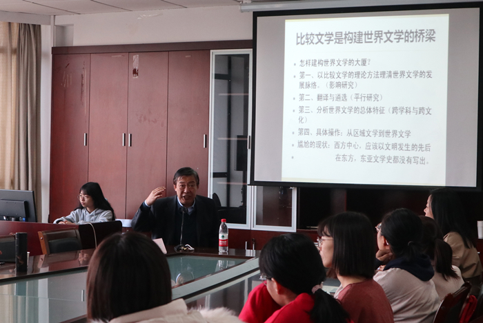 2019年11月20日下午,中国人民大学文学院杰出学者特聘教授、长江学者高旭东教授受邀来偷拍视频 开展以“从理论与个案对世界文学的重新审视”为主题的讲座,讲座于我校综合楼404会议厅举行,由偷拍视频 副院长程丽蓉教授主持,偷拍视频 汉语1901班与汉语19A班、中文系研究生等参加了讲座。