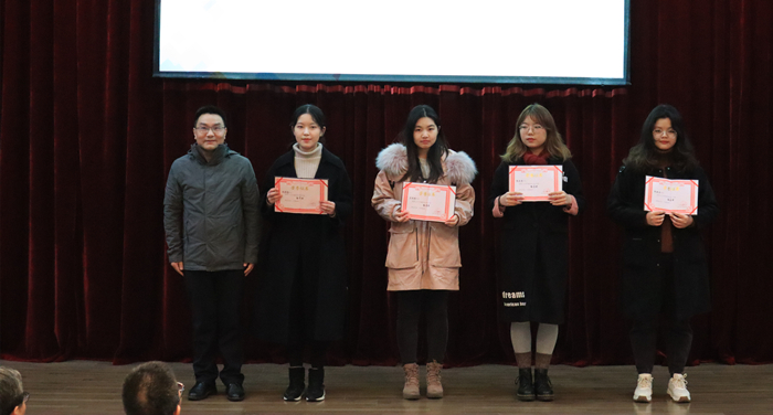 副院长潘文年为获得诚智奖的学生代表颁奖