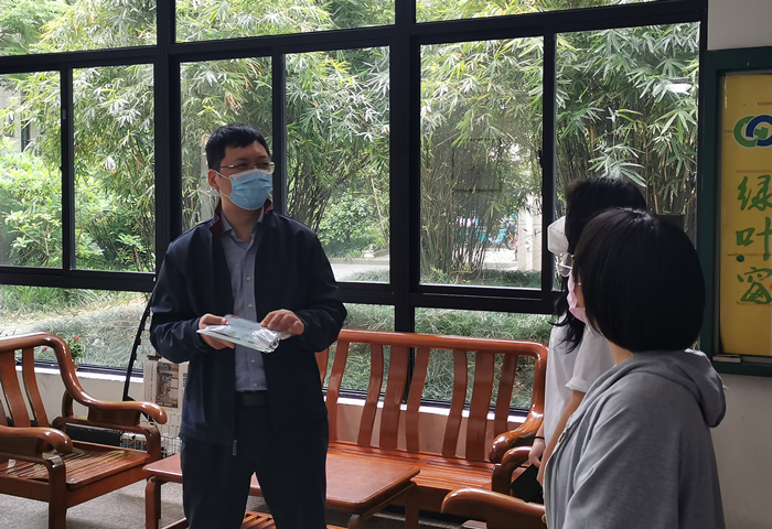 郑晓东一行先后前往33幢、39幢学生宿舍看望返校同学,并与他们进行了座谈。郑晓东对同学们率先顺利返校表示欢迎和赞赏,仔细询问了他们返校途中的个人防护情况,并为他们发放了学院精心准备的健康防护包。他对同学们提出两点要求,一是希望大家按照少出门、戴口罩、勤洗手、多通风、不聚集的要求做好个人防护,严格遵守和配合学校在继续从严管控阶段的各项防控措施;二是希望同学们带着任务返校,接下来要把更多的精力投入到研究生复试、求职就业和专业学习中去,把丢掉的时间抢回来,把耽误的事情补回来。他还叮嘱同学们,在接下来的学习生活中如果遇到困难要及时跟学院反映,学院会尽力帮助大家解决。针对同学们就考研、就业、学习等方面提出来的疑问,学工团队的老师们一一进行了解答。