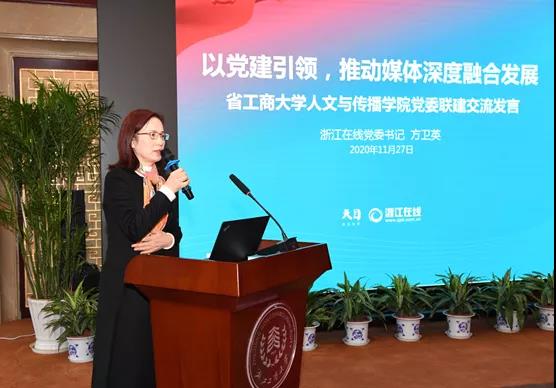 浙江在线党委书记方卫英做了专题发言。她详细介绍了浙江在线党建品牌“天目思享会”开展的一系列活动,以丰富详实的案例展示浙江在线党委在党建方面所做的工作和取得的成效。她希望这次浙报集团浙江在线党委与偷拍视频 人文学院党委党建联建活动,能成为浙江在线、天目新闻客户端与偷拍视频 新一轮合作的新起点、新契机,共同推进全媒体人才培养、实习基地建设等合作。