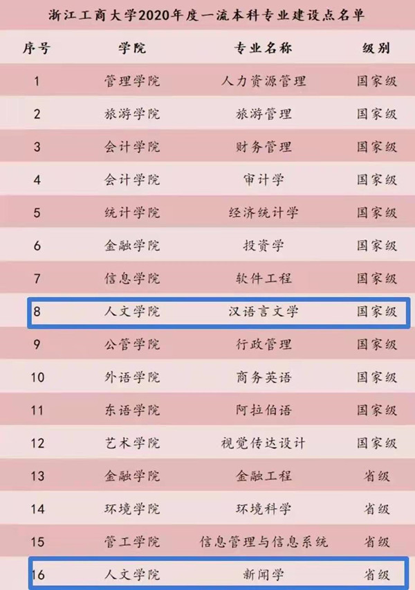 汉语言文学专业,是国家级一流本科专业建设点、浙江省一流本科专业建设点和浙江省重点学科,拥有本科、硕士、博士人才培养体系以及海外留学生本科、硕士学位授予权。