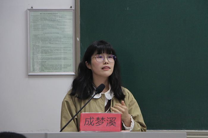 单恩颐同学代表宣讲团发言。她表示宣讲团将担负起学习党史、传播党史的责任,从青年学生的视角讲好党的百年故事,推动党史学习入心、化行,切实发挥党史教育的学习者、传播者、传承者的作用。