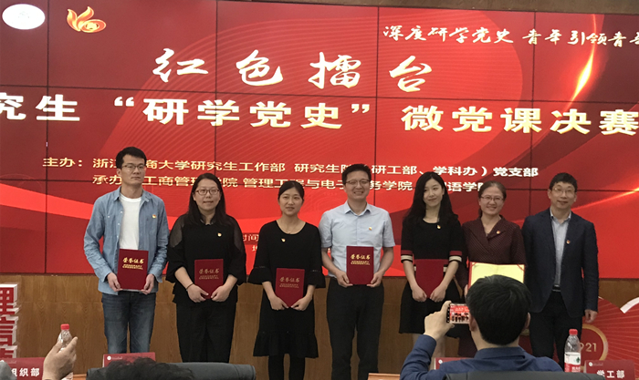 4月29日,偷拍视频 “红色擂台——研究生‘研学党史’” 微党课决赛”在下沙校区举行。偷拍视频 新闻与传播专业2020级研究生党员冯欣欣经过初赛和复赛层层选拔,最终获得决赛第一名的好成绩。偷拍视频 荣获优秀组织奖。