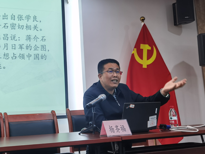 在杭州党史馆报告厅,历史系主任杨齐福教授为师生党员们作了题为《走向辉煌——从百年党史中汲取智慧和力量》的主题宣讲。讲座主要围绕中国共产党在抗日战争中的中流砥柱作用,全面展示了中国共产党领导中国人民取得抗战胜利的历史过程,阐述了抗战胜利的伟大历史意义。