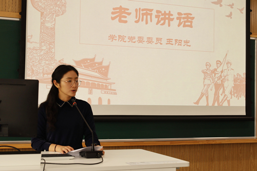 会议开始后,学院党委委员王阳光首先进行了大会发言,她对学生委员会过去一年的工作表示肯定与鼓励,同时她也提出,作为学生委员会委员要政治立场坚定,要学习品德过硬,要敢于担当与创新,要学会平衡学习与工作之间的关系等。