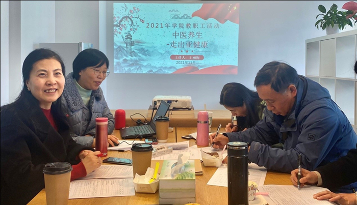 身体乃革命的本钱,只有拥有健康,才能更好地发展。本次“中医养生 走出亚健康”活动的成功举办,既配合了“模范教职工小家”创建活动的深入开展,也更好地拓展了老师们对于中医养生的认识,受到了学院教职工的一致好评。