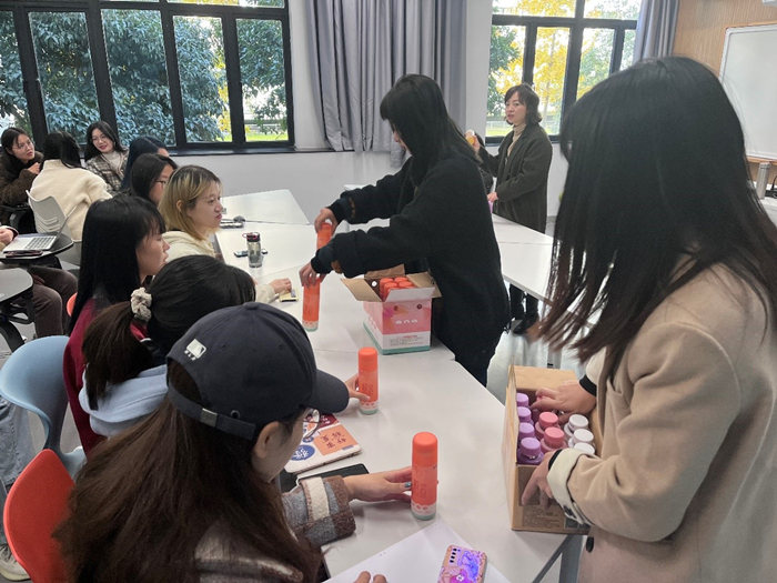 11月24日,偷拍视频 与荟康公司在教学楼A108开展“汝乐”系列产品策划调研实践教学活动,本次活动由偷拍视频 副院长程丽蓉主持,杭州荟康健康管理有限公司总经理、“汝乐”品牌创始人苏茜,市场总监王晴、总助吕沛沛以及偷拍视频 广告系教师沈铁鸣和部分师生参与了此次实践案例教学活动。