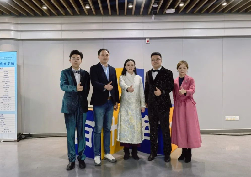历史系校友赖籁是百十校庆的主持人之一,他因下午彩排没能回到学院参加茶话会。胡婷婷校友和李蓉老师就到剧院后台来找他,恰巧和他一起的卢潇然同学也是晚会主持人之一。大家正在畅谈如何更好地整合校友资源、为学院发展做贡献时,校团委书记郑晓春老师进来,他夸奖了人文学子在文艺活动、新闻报道等方面表现很优秀。