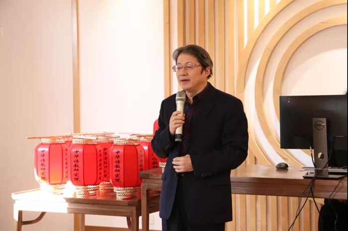 图为唱道文化教育集团董事长、中华诗教研究院院长胡维瑾致辞