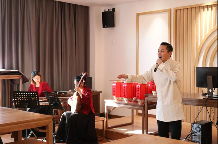 图为唱道文化教育集团董事长胡维瑾和如是新声文化传播有限公司总经理赖籁表演