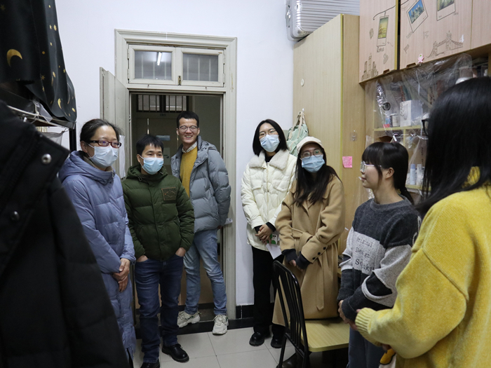 老师们与同学们进行了亲切交流,悉心了解同学们在学校的生活情况以及离校安排,尤其关注了大一新生的入学适应情况。面对接下来的寒假,林琳书记叮嘱同学们要注意做好疫情防护工作,希望他们能合理安排学习与生活,度过一个充实的假期。