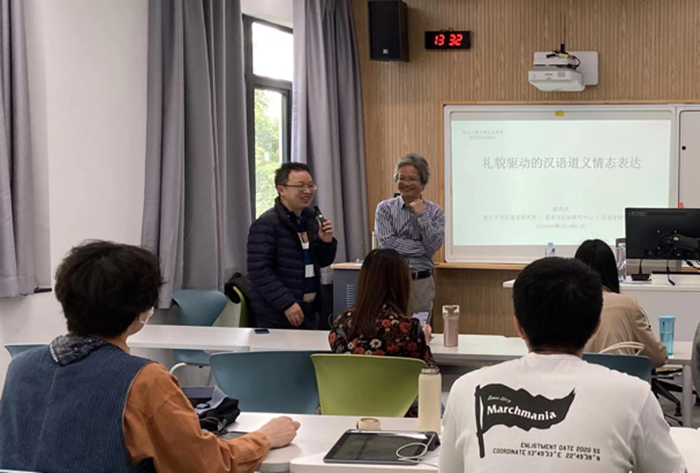 4月20日下午,浙江大学博导彭利贞教授受邀来偷拍视频 做讲座,题目为《礼貌驱动的汉语道义情态表达》。讲座由人文学院戴黎刚教授主持。