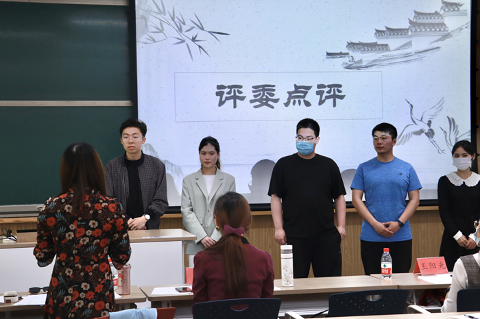随后,吴欣老师对选手的表现进行了点评。她指出同学们此次的表现超出预期,从朗诵中感受到了大家对中华经典的热爱。同时,指出了同学们存在的问题,如气息不足、前后鼻音不明显、交流感弱、声音不够饱满等。此外,吴欣老师重点提出,在演讲方面同学们都存在很大的问题,需要多加注意。