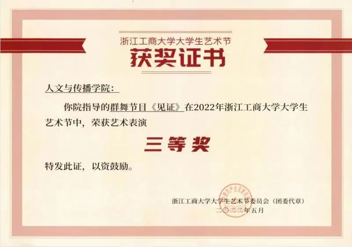 本次大学生艺术节节目精彩纷呈,在这一众优秀作品中,人文学院的舞蹈作品《见证》脱颖而出,获得了三等奖。人文学子们的舞蹈见证了乡村扶贫攻坚的辛酸苦辣,而今晚观看节目的观众则见证了舞者们尽态极妍背后的汗水,她们每一步努力都值得今晚这近乎完美的演出!希望人文舞者们能同《见证》的结局一样,在笑语与晴朗中,举目花开好,芬芳做归途。
