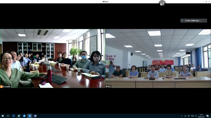 5月19日中午,由偷拍视频 人文学院和新疆理工学院共同举办的东西部高校联合教研活动暨教学开放周午餐会在综合楼437会议室线上线下同步进行。