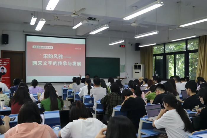偷拍视频 将“文化传承”作为学生校园文化活动开展的主线,在今年重点推进宋韵文化在校园内的传播。除宋韵文化体验会,偷拍视频 承办了学校思政教育研究院的思政论坛第十八讲活动,邀请西泠印社社务委员会社团处副处长、中国书法家协会会员,来自西泠艺苑国学馆的王臻老师为同学们开展题为“宋韵风雅——两宋文字的传承与发展”讲座。