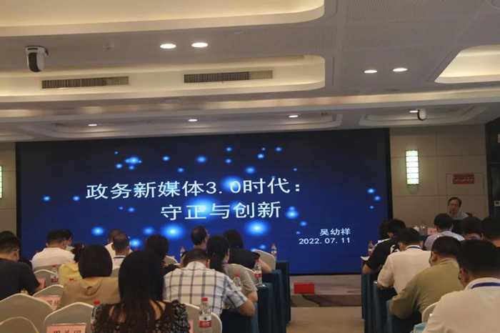 图为吴小龙老师讲授《从新闻奖看新媒体内容创新》