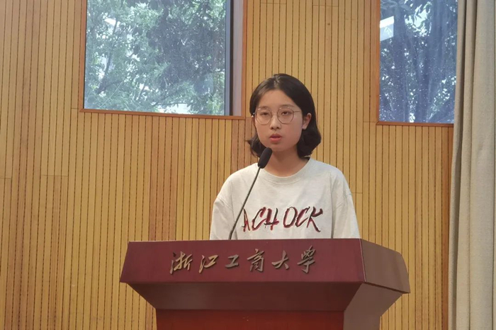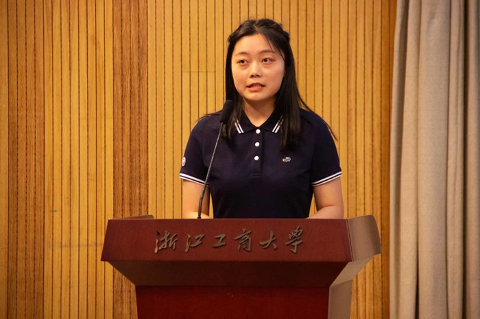研究生新生代表郭茹芸同学分享了自己新阶段的学习规划。她表示,作为一名商大研究生,她将以求真务实的态度,持之以恒地探索未知领域,坚守“诚、毅、勤、朴”的校训,努力为自己学科领域的学术研究贡献出自己的一份力量。