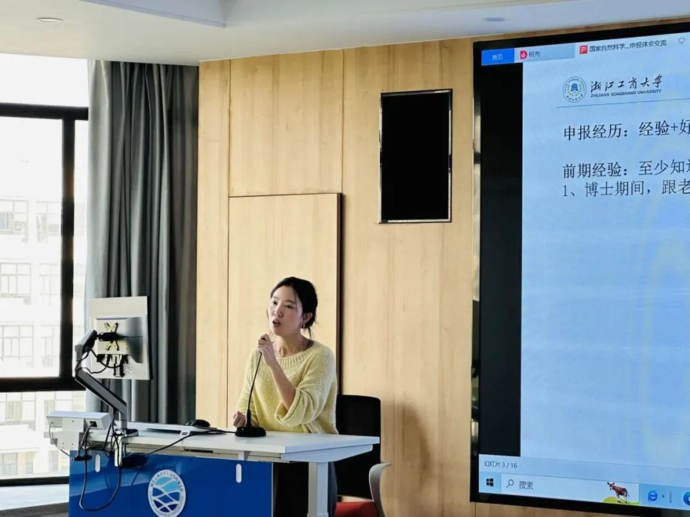 会议首先邀请了两位今年申报国社科、国自科成功的教师成梦溪和叶苏扬老师介绍了申报成功的经验。成梦溪老师结合自身经验和自己亲身申报国家社科基金项目的经历,从长期积累、规划项目申报、课题选题设计等方面向在座的诸位老师分享了自己申报成功的心得体会。提出项目申报应该做到思想上锲而不舍和行动上精雕细琢。