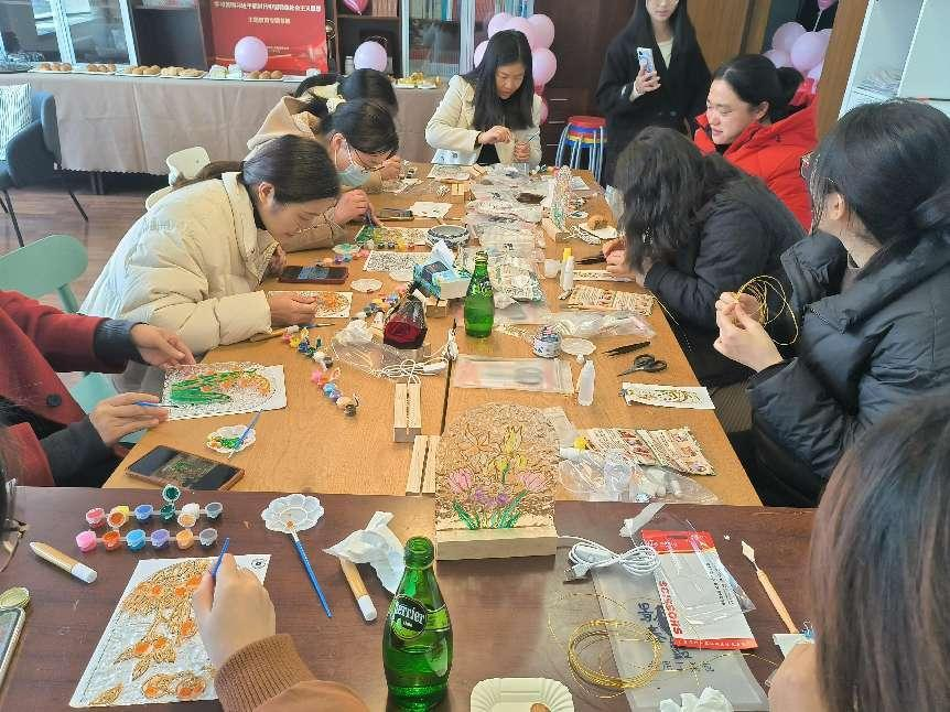 阳春三月,我们迎来了第114个“三八”国际妇女节,学院响应学校“书写新时代·巾帼绽芳华”的活动主题,3月8日下午在学院教工小家开展以“体验非遗手工,感受文化魅力”为主题的手工DIY非遗景泰蓝掐丝珐琅书签和手工DIY玻璃画小夜灯活动,通过手工的趣味,营造轻松愉悦的活动氛围,充分展示知识女性良好的文化素养和精神面貌,增进相互之间的交流和了解。