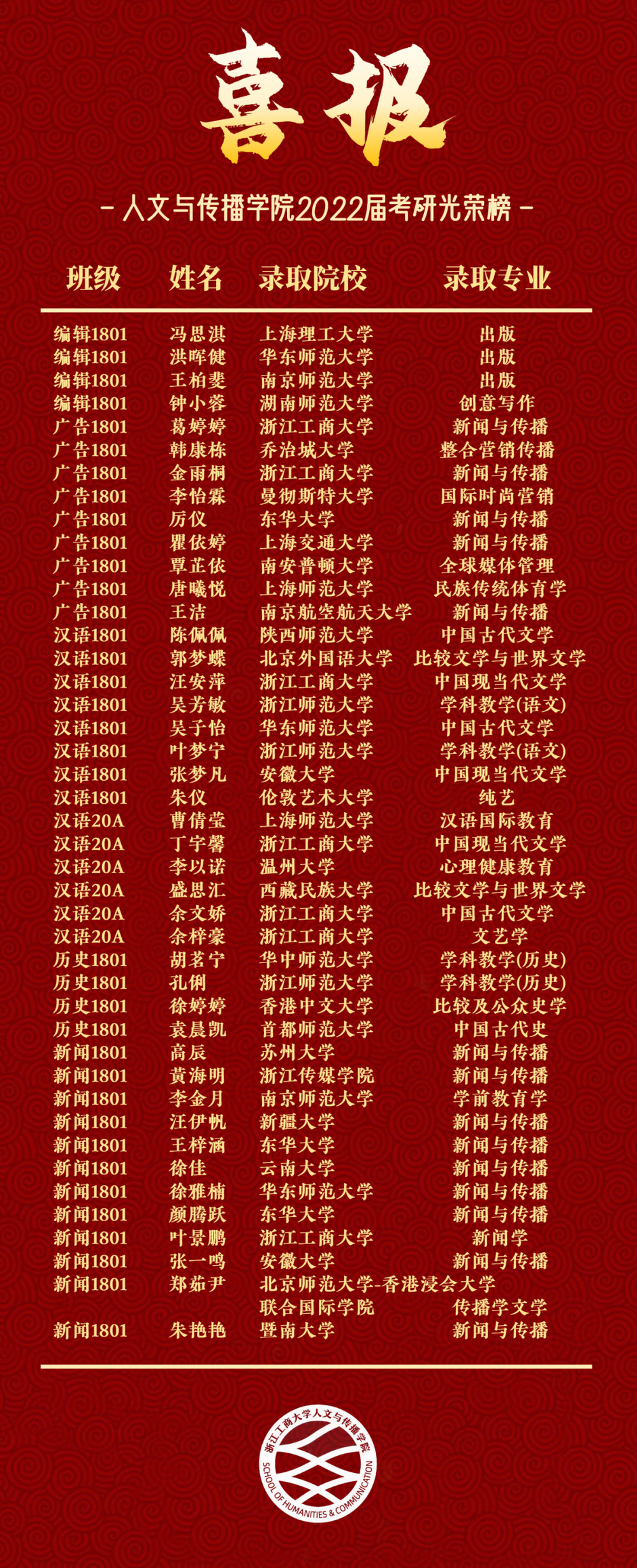 长关漫道书为马,铁戟金戈笔作枪。在人文学子的不懈努力下,截止5月20日,偷拍视频 2022届本科毕业生研究生录取人数达43人,其中全日制国内统招31人、推免录取8人、出国留学4人。