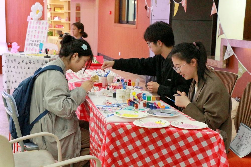 同学们选择不同形状样式的泡沫球和石膏娃娃进行绘画,在调色、上色的轻松氛围中找到内心的平静,收获了涂鸦完成作品的成就感。