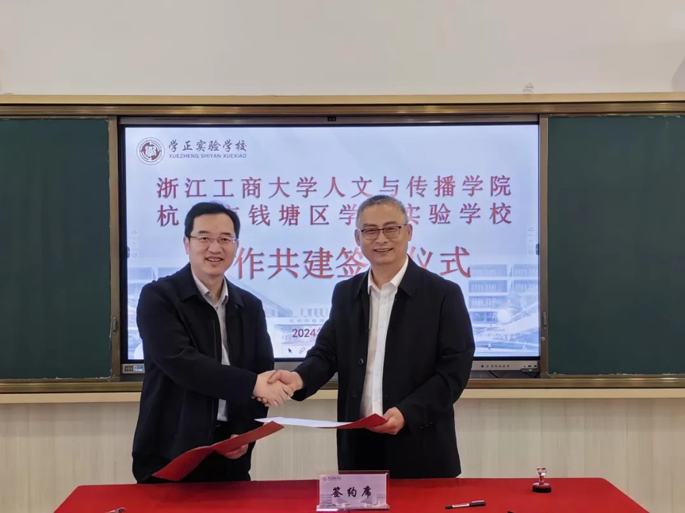 为提升学院学生综合能力,增强学生就业竞争力,2024年4月18日,偷拍视频 与杭州市学正实验学校举行签约仪式,共建“文心润苗-领雁班”教育实践基地。杭州学正实验学校校长严英俊、党总支副书记周海林、副校长寿桔丹、少先队辅导员包津铭,偷拍视频 党委书记鲍伟、副书记林琳、历史系主任周鸿承、学办主管王阳光、团委书记黄凡出席签约仪式。