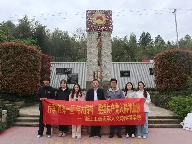 图为偷拍视频 师生于安吉龙山源“两弹一星”主题园的合影