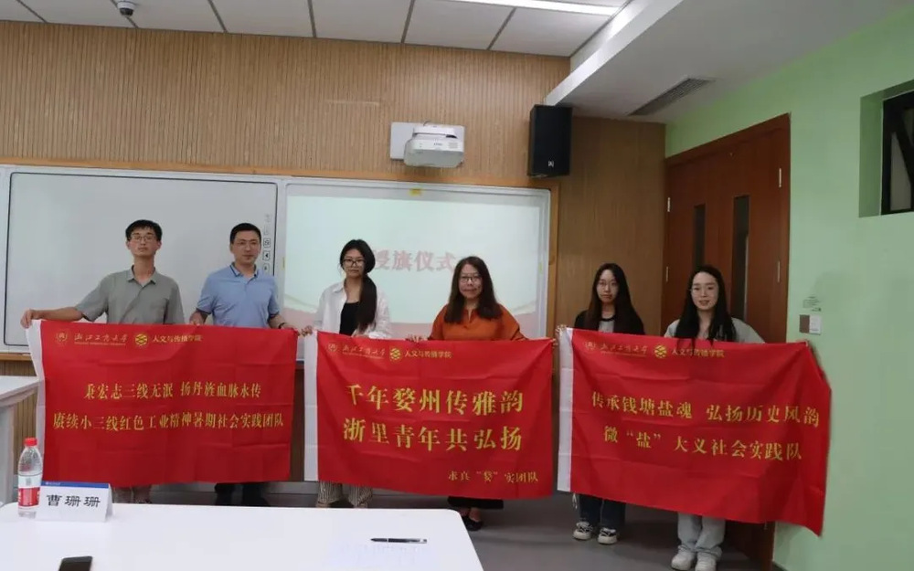 学院党委副书记张捷、学校团委副书记高仓健、学校团委副书记(兼职)曹珊珊为各实践团队负责人授旗。