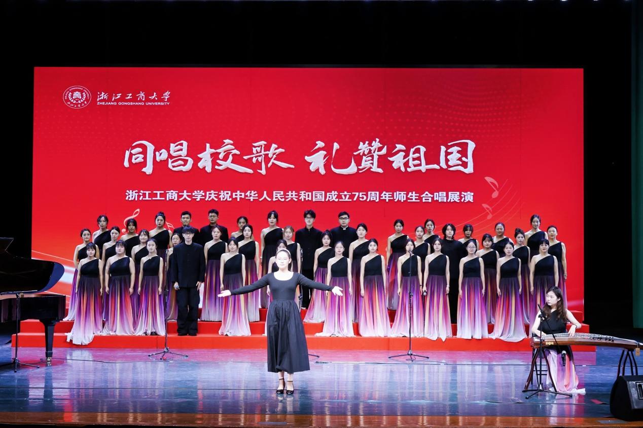 下沙校区于2024年10月30日举行庆祝中华人民共和国成立75周年师生合唱展演。学院精心策划并组织47名老师与学生参加此次合唱比赛,用歌声传递对祖国的深情热爱和对商大的浓浓情谊,荣获师生合唱比赛最佳组织奖。