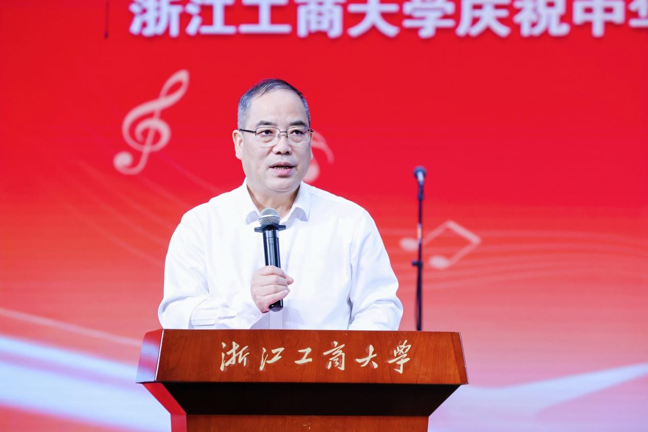 校党委书记郁建兴出席合唱比赛活动。郁书记指出,新中国成立75年来,中国共产党带领全国各族人民在华夏大地创造了震古烁今的人间奇迹。今年是习近平同志对学校作出重要指示20周年,也是学校升格大学20周年,在这关键时期,我校发布了使命愿景红皮书,描绘了学校发展的蓝图。而本次“同唱校歌,礼赞祖国”合唱展演活动既是回首过去,也是歌唱未来,我们要以更加昂扬的精神面貌致力于商大命运共同体建设,凝聚卓越大学建设的磅礴伟力。
