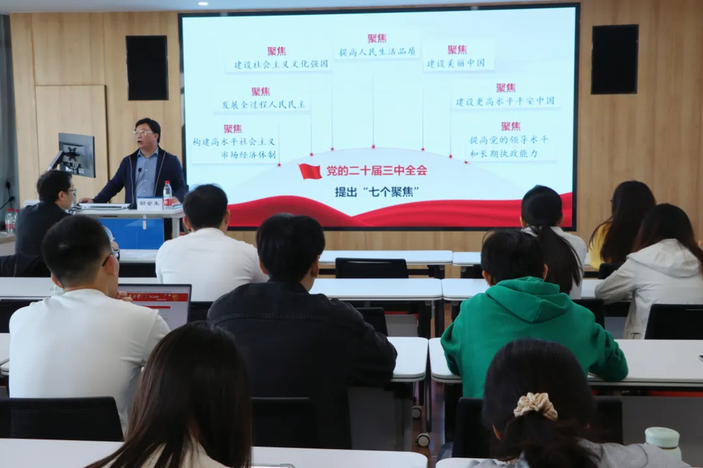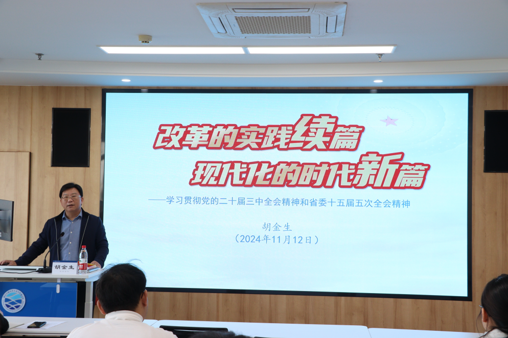 为学习贯彻党的二十届三中全会精神和省委十五届五次全会精神,鼓足师生干劲,营造风清气正的校园文化环境和育人环境,校纪委书记胡金生于11月12日下午为偷拍视频 师生齐上一堂以“改革实践续篇 现代化的时代新篇”为主题的专题党课。党课由学院党委书记鲍伟主持,学院党委副书记张捷、辅导员徐玉怡以及新闻2201部分学生参加现场学习。