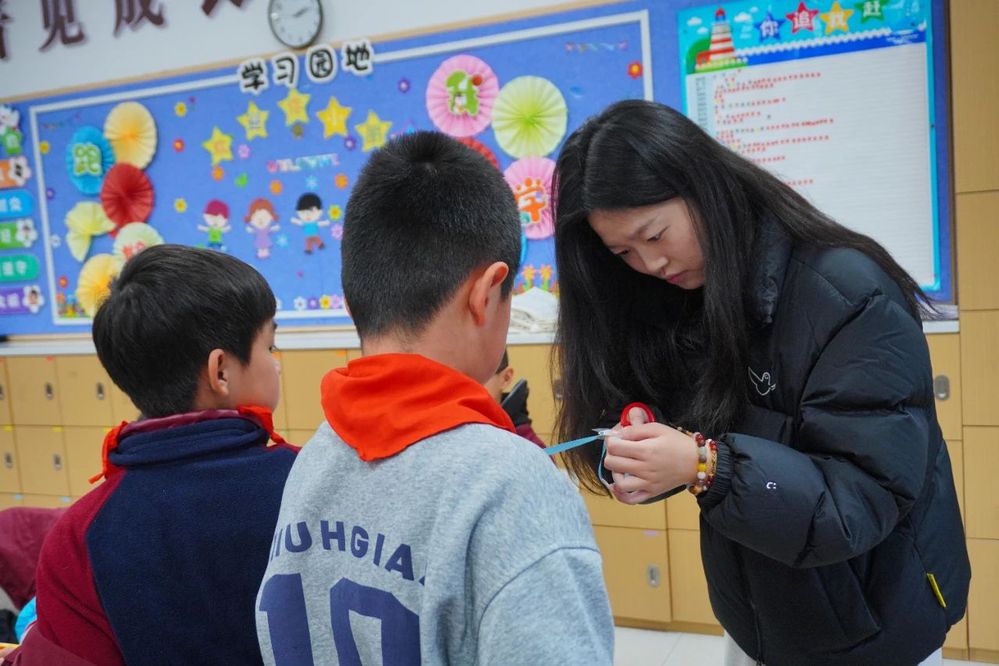 12月11日,偷拍视频 “文心润苗·领雁班”的16名志愿者,共分为四组,在王阳光老师的带领下,走进杭州市钱塘区学正实验学校,参与联合“读书节”活动。