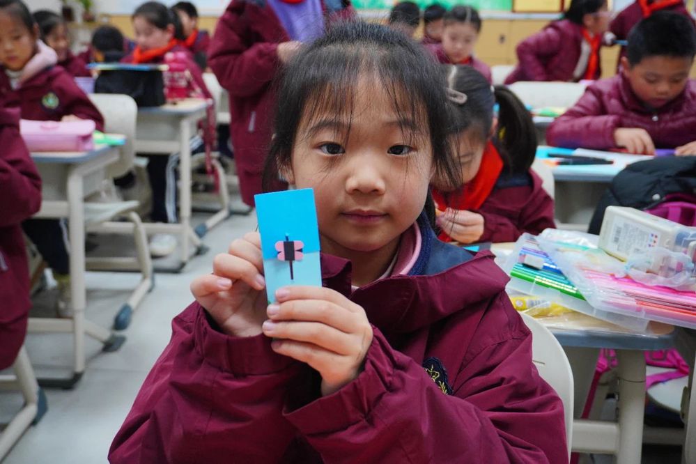 “故事绘画接力”活动结束之后,进入本次“读书节”的书签制作环节。志愿者们先是详细介绍了书签的制作流程,接着给每位小朋友发放材料。在志愿者们的耐心帮助下,小朋友们的手也充满了创造力。他们用剪刀小心翼翼地剪出各种形状并用画笔写下激励自己的话语,或是描绘心中的美好小世界。在展示环节,每位小朋友都争先恐后地向大家展示自己的作品,甚至将书签作为礼物送给志愿者们。