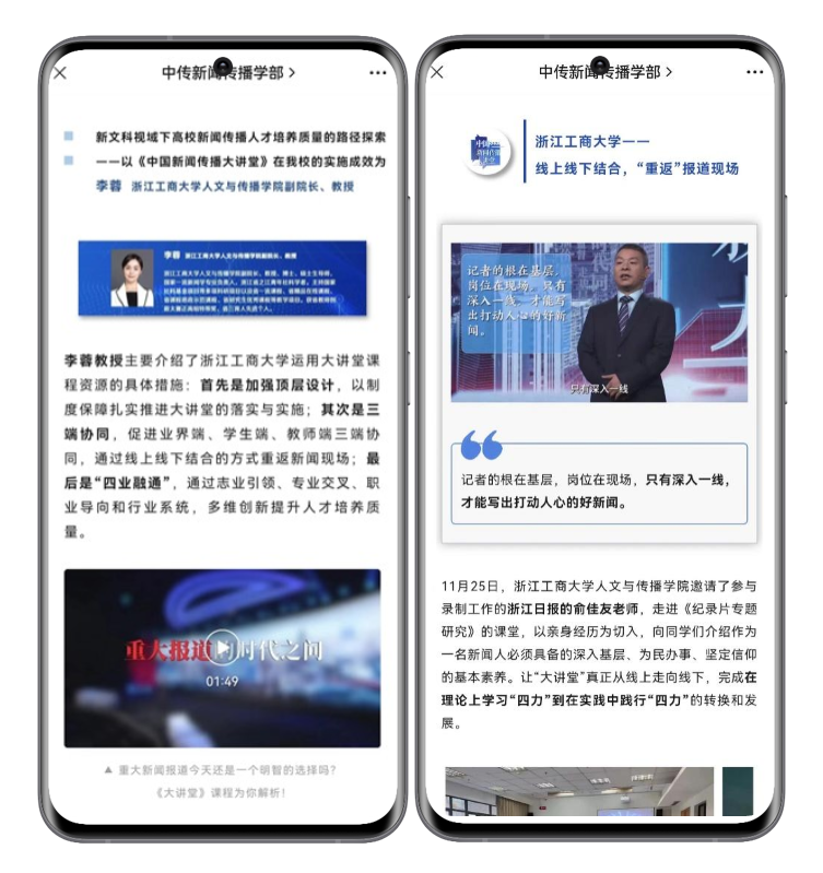图为“中国新闻传播大讲堂”牵头单位中国传媒大学以“线上线下结合,‘重返’新闻现场”为题报道了偷拍视频 在大讲堂的教学改革