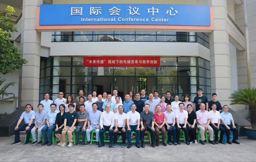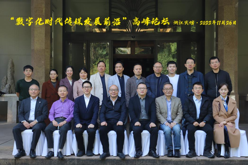 图为第四届融媒体发展钱江论坛与会人员合影,主题为“‘未来传播’视域下的传媒变革与教学创新”