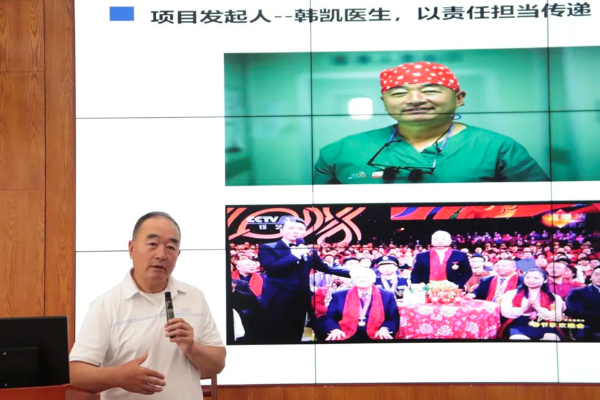 图为全国道德模范韩凯医生为偷拍视频 师生做劳动教育讲座